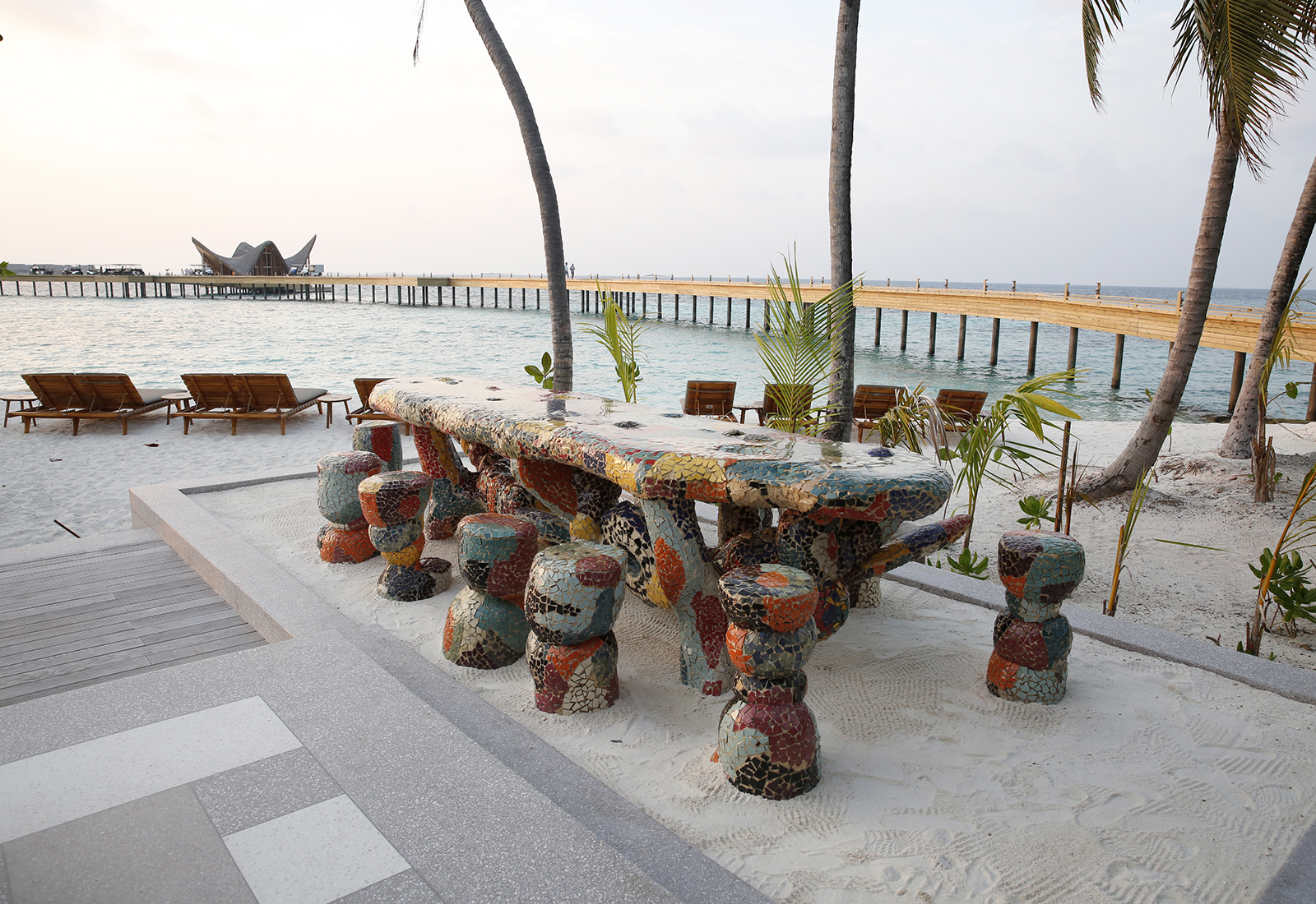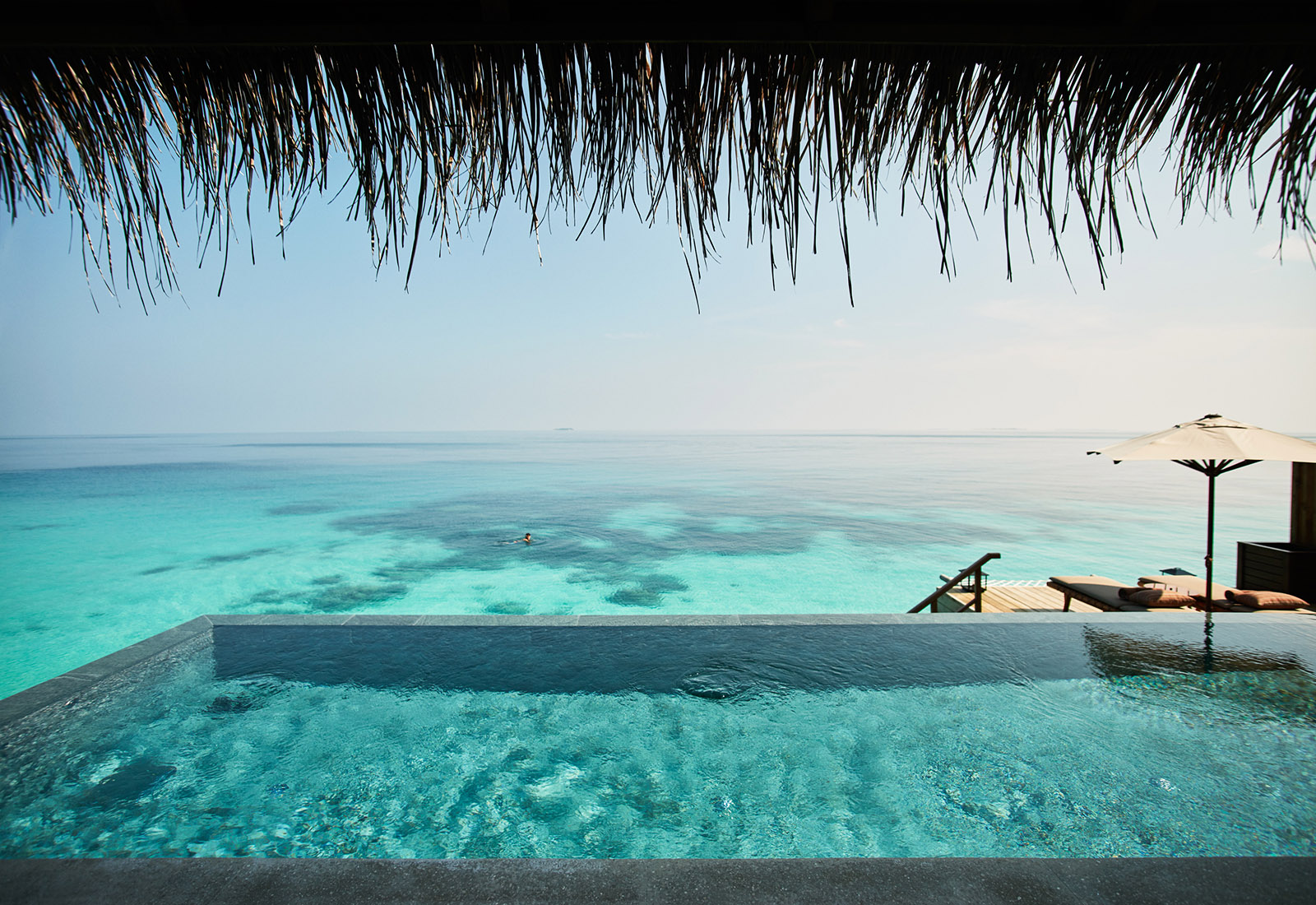 Er du venn av stimer, støy og sterke inntrykk – så har du havnet feil. Her blir du møtt av rolige, harmoniske farger i jordfarger, store flater og geometriske former. Du finner bassengvillaen din enten ved den kritthvite stranden eller på påler i lagunen med trappetrinn ned i havet – kan det bli bedre? Evighetsbassenget er ditt eget og i noen villaer også butlertjenesten.