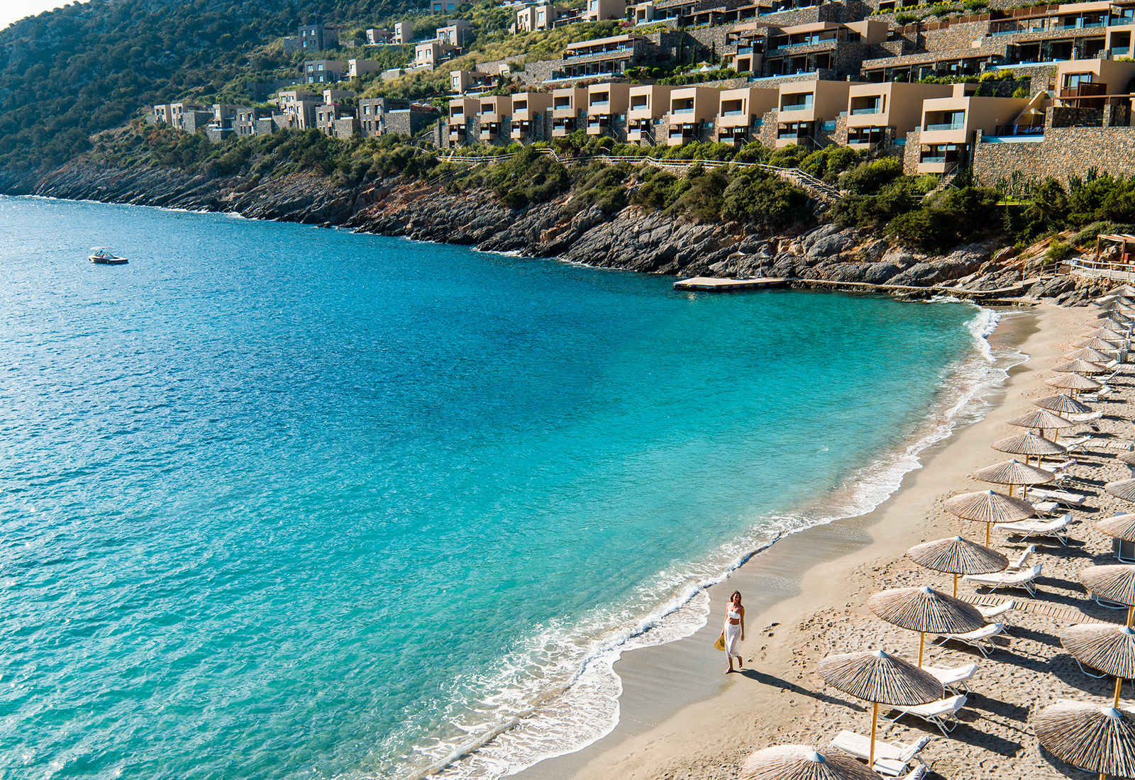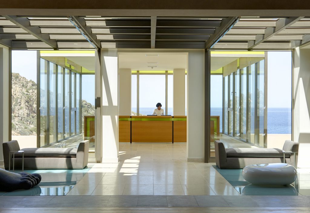 Den fine beliggenheten i åssiden gjør at nesten alle rom, suiter og villaer har balkong med utsikt over havet, men ønsker du å komme enda nærmere bestiller vi overnatting med saltvannsbasseng. Her er det luksuriøst, moderne og stilig i lyse farger. Bonus: Stjernehimmelen over balkongen/terrassen din er ikke til å leke med.
