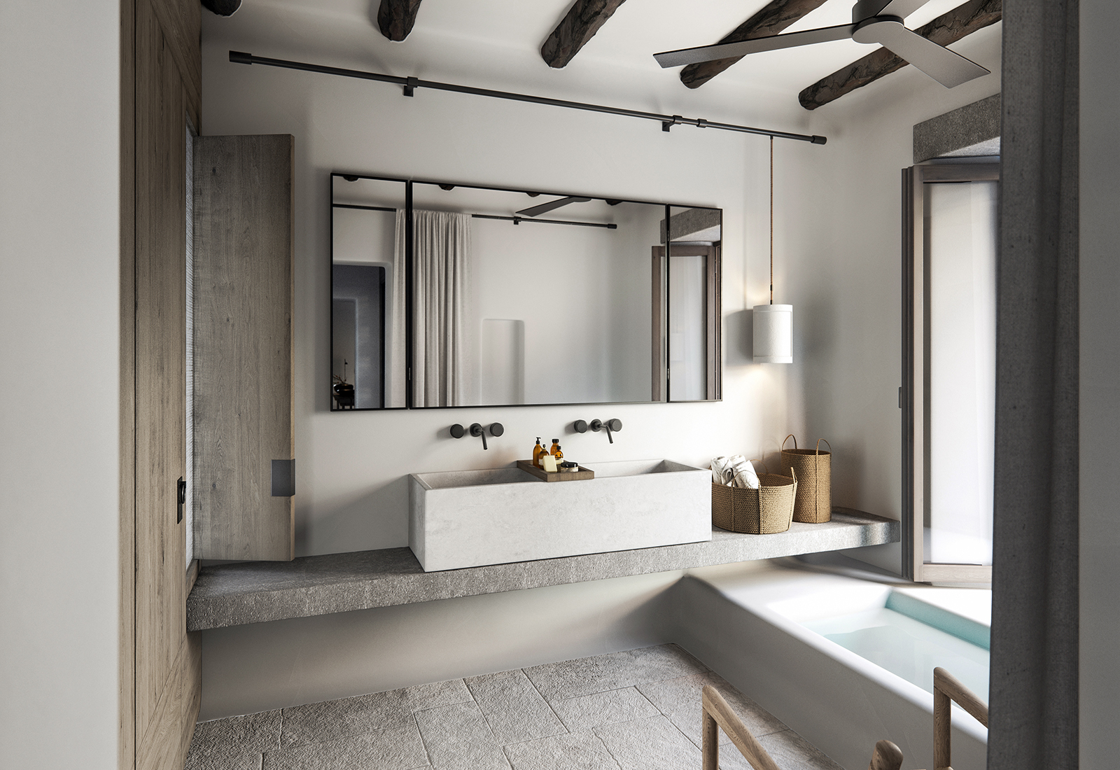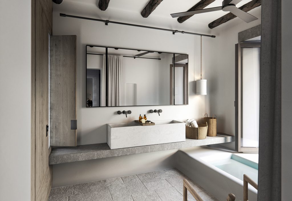 Kalesma har 13 1-roms suiter, 12 ett-roms villaer og de to store villaene Apollon og Artemis som blander lokal stil med høy estetikk, og gir gjestene følelsen av å være i autentiske mykoniske omgivelser. Inspirert av kykladisk arkitektur, kombinerer Kalesma tradisjon med moderne elementer, og tilbyr elegant og minimalistisk interiør laget med lokale materialer.
