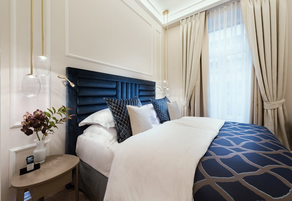 Her er det lagt stor vekt på detaljene. Svartglaserte dører til rommene som får Downing Street 10 til å se misunnelig hitover. Mahogni møter lin. Konservativt og klassisk. Sengene er dekorert med gigantiske puter for maksimal sovekomfort. Badekåpene matcher marmormøblene på de velproporsjonerte badene.